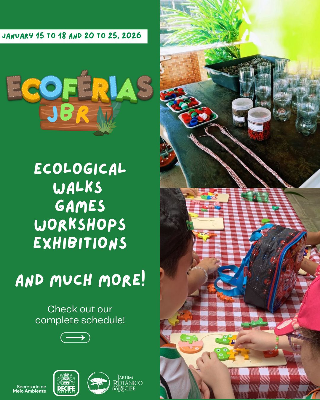 The Holiday Educational Programme is free and open to the public, with limited spaces depending on the activity. The Recife City Hall, through the Department of Environment, invites everyone to participate in this special season of discovery, nature appreciation, and conservation at Botanic Garden of Recife.