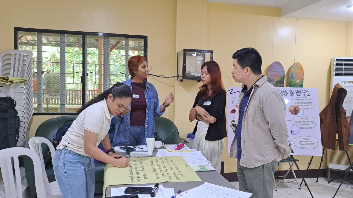 At the project start in October 2025, the BGCI education team began training project partners – ICRAF , PEF (Philippine Eagle Foundation) and BGCI colleagues – in Behaviour Centered Design (BCD). BCD is a framework which combines behavioural science and design thinking to create effective solutions for environmental challenges. It focuses on understanding the human, social, and contextual drivers behind environmental actions, utilising an eight-step process—from framing the problem to assessing the launch process—to encourage lasting behaviour change in communities.